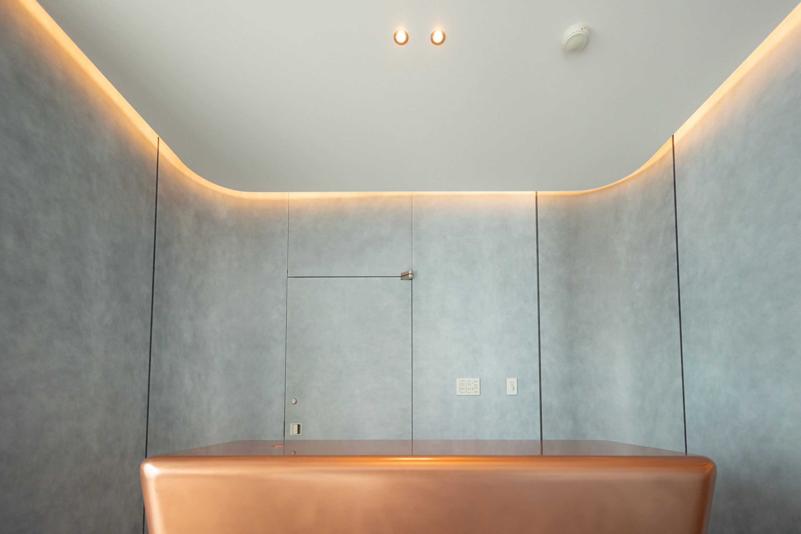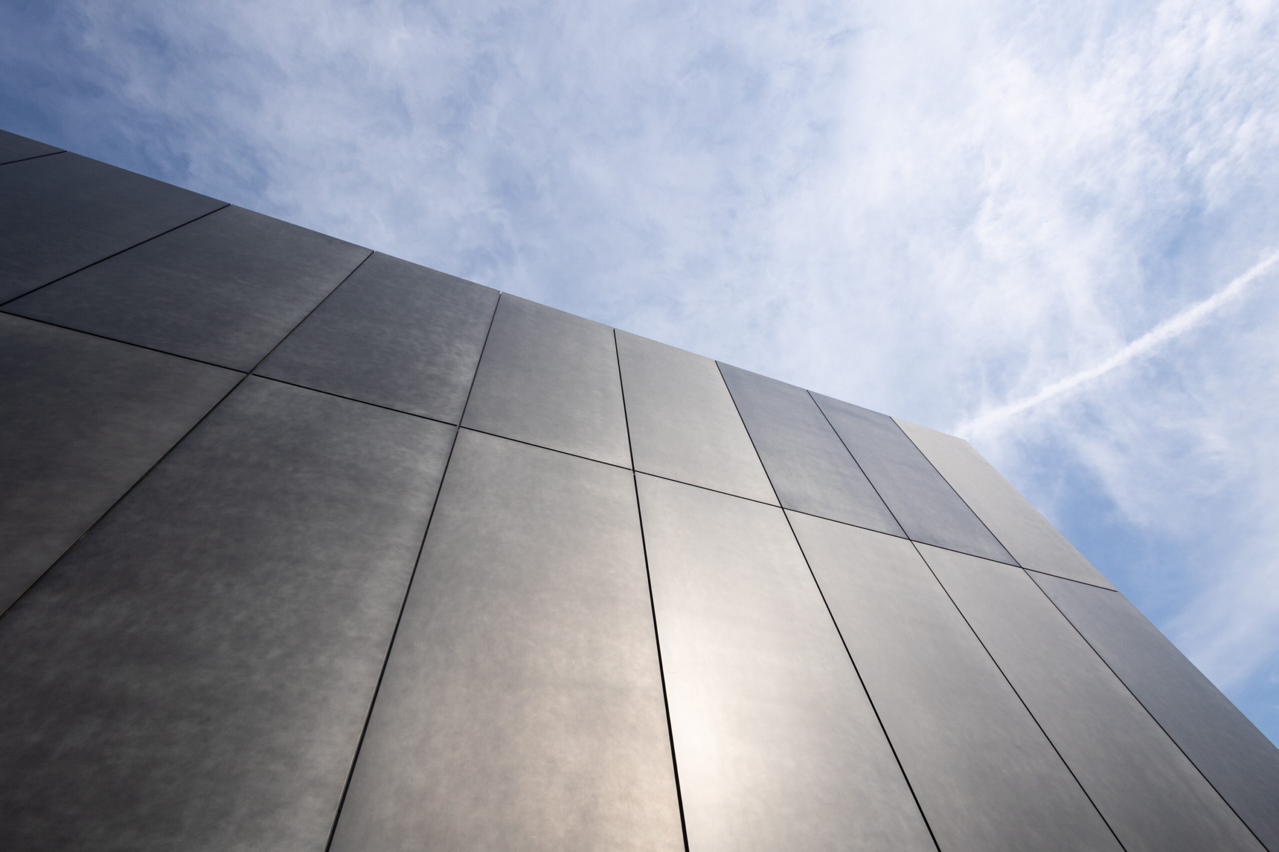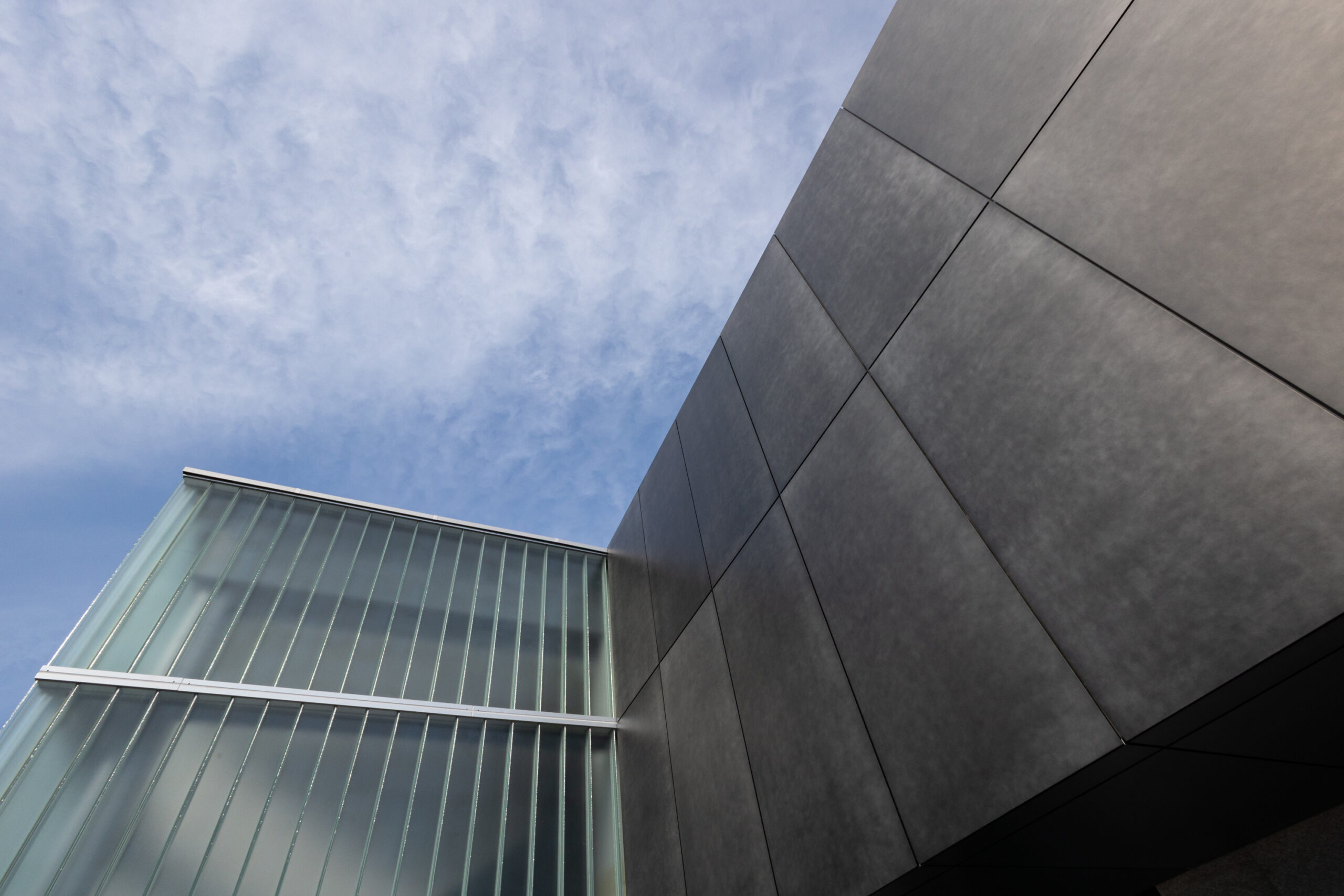 設計者様が仕上に求めたのは、「自然なムラ感があること」と「他にない仕上であること」の二点でした。加えて、余計なものが見えないすっきりとした意匠と、確かな水仕舞を兼ね備えた納まりの両立も、この案件における重要なテーマでした。その要件に応えるため採用されたのが、「CRAFT N. Light」(高耐食メッキ鋼板・t2.3mm)のカットパネルです。パネルエッジを効かせた金属パネルらしいシャープな表情と、職人の手仕事による自然なムラ感が共存するこの仕上は、設計者様が重視したポイントを体現するものでした。