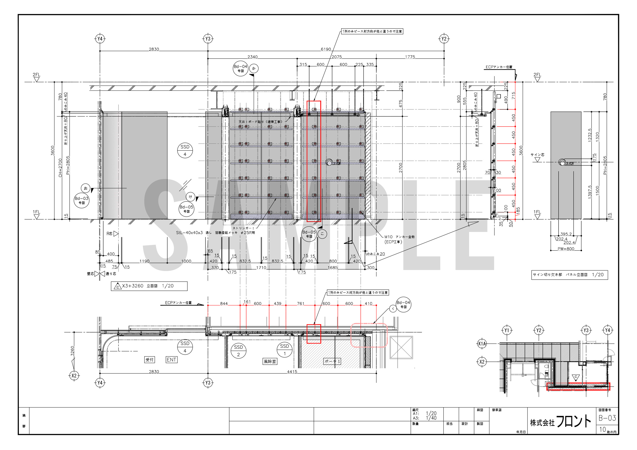 今回のプロジェクトは、既にお付き合いのあった設計事務所様からご相談をいただいたことに始まります。鉄骨造に金属化粧パネルを採用するという前提のもと、納まり・仕上・コスト感・工程スケジュールを基本設計の段階からご一緒させていただき、受注へとつながりました。