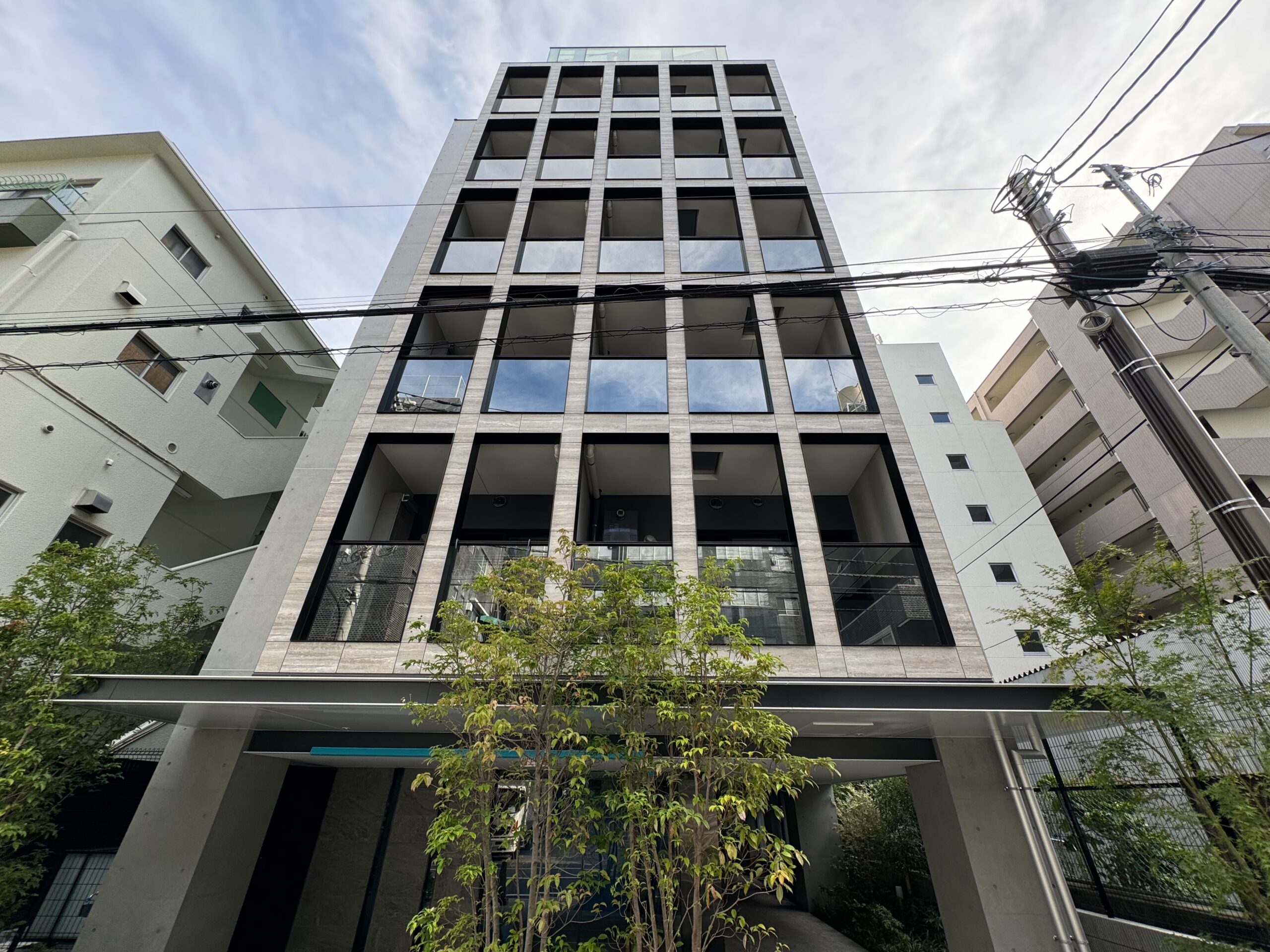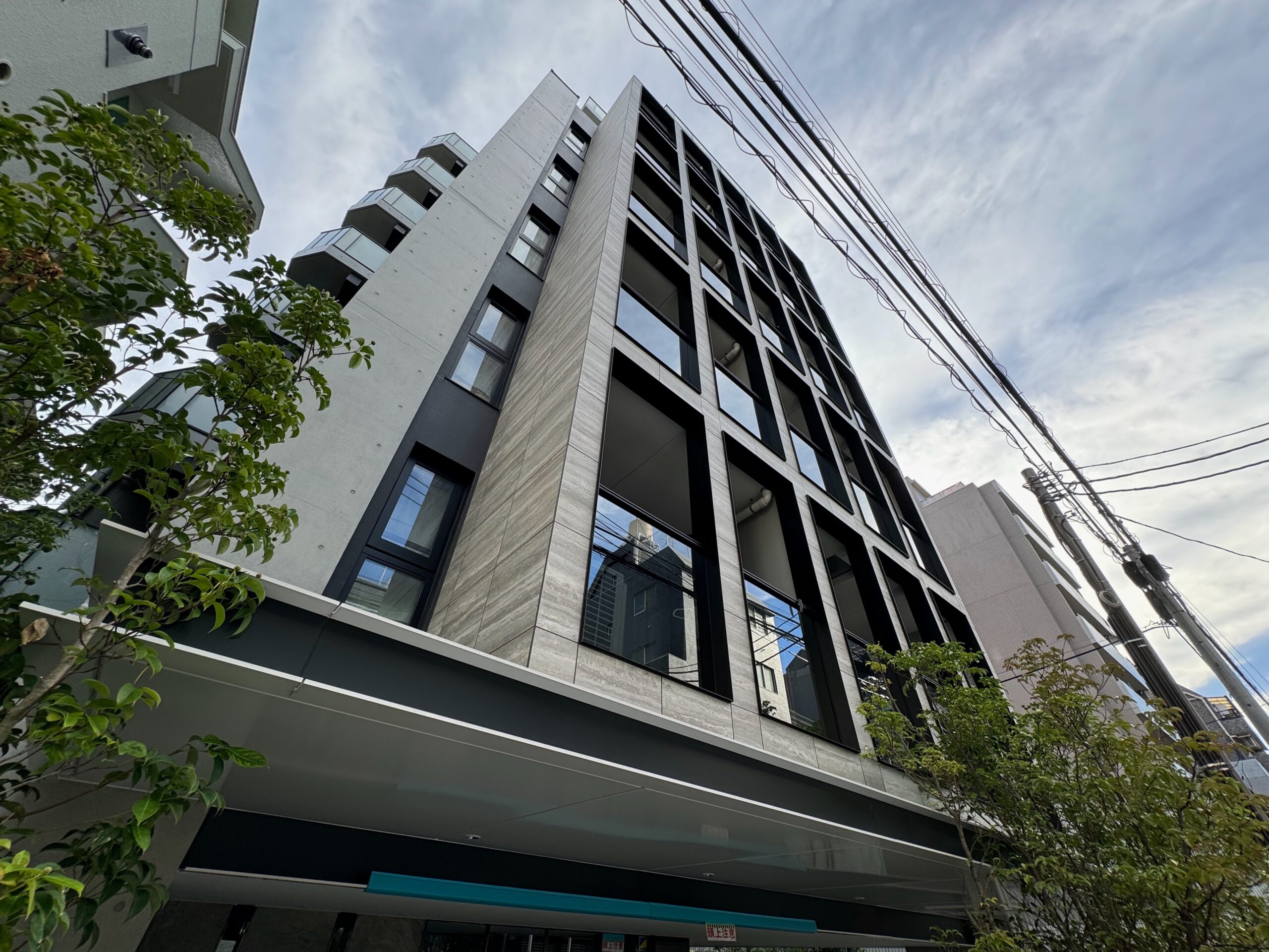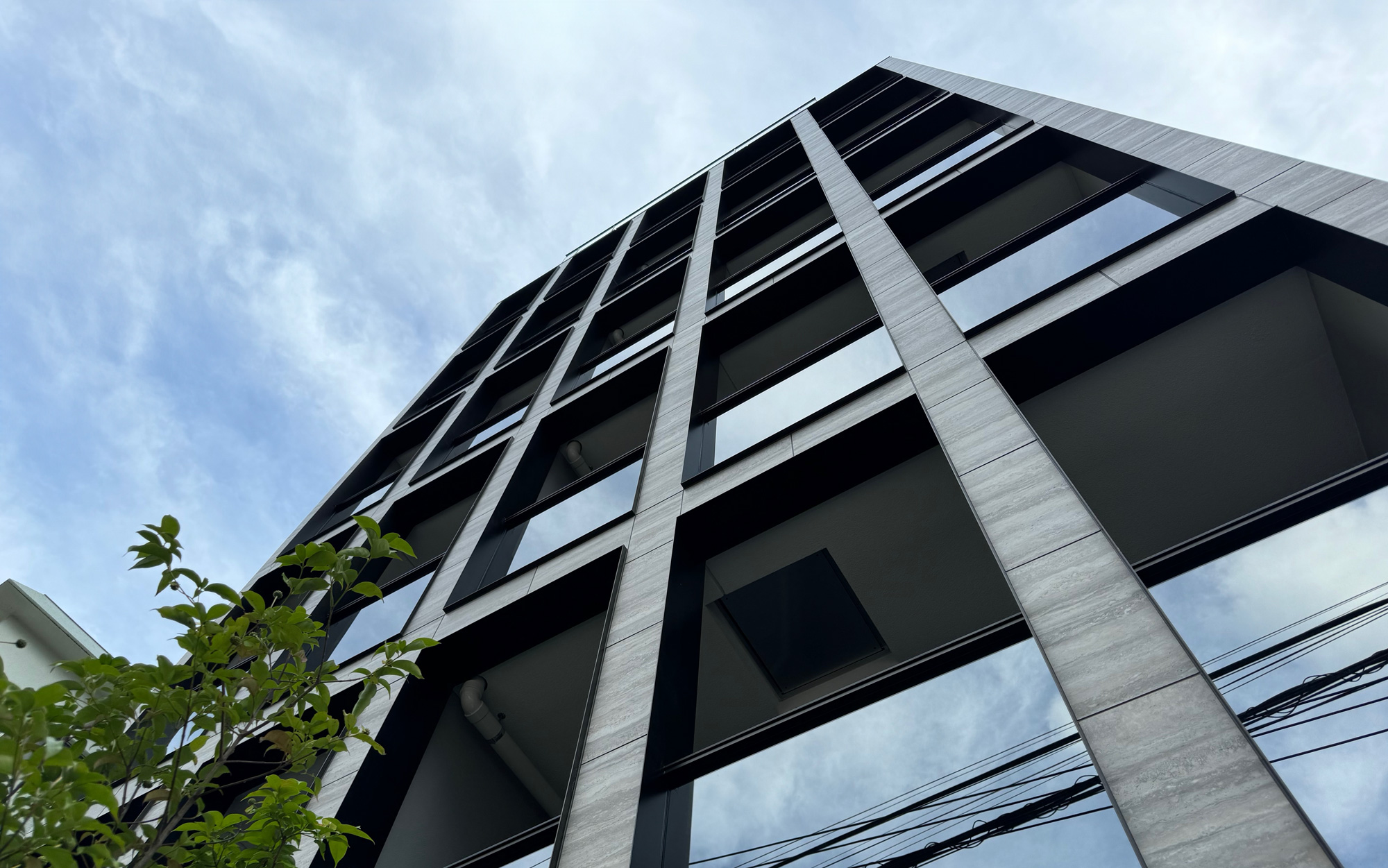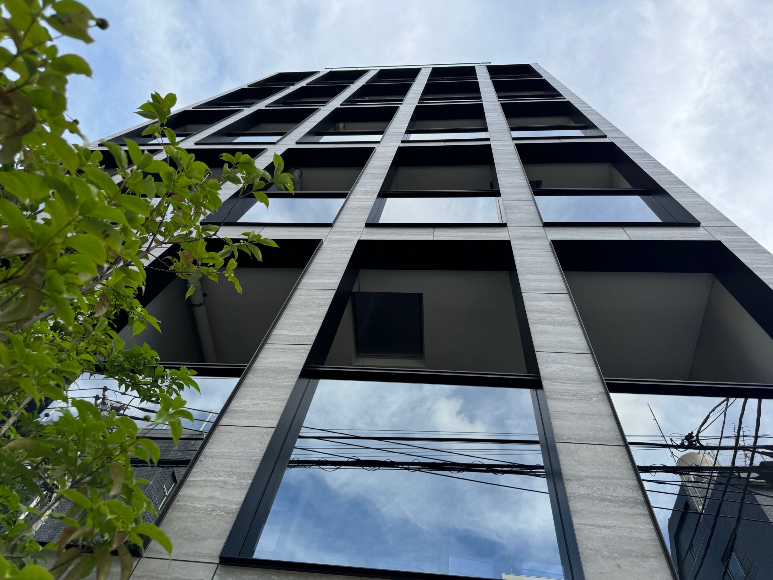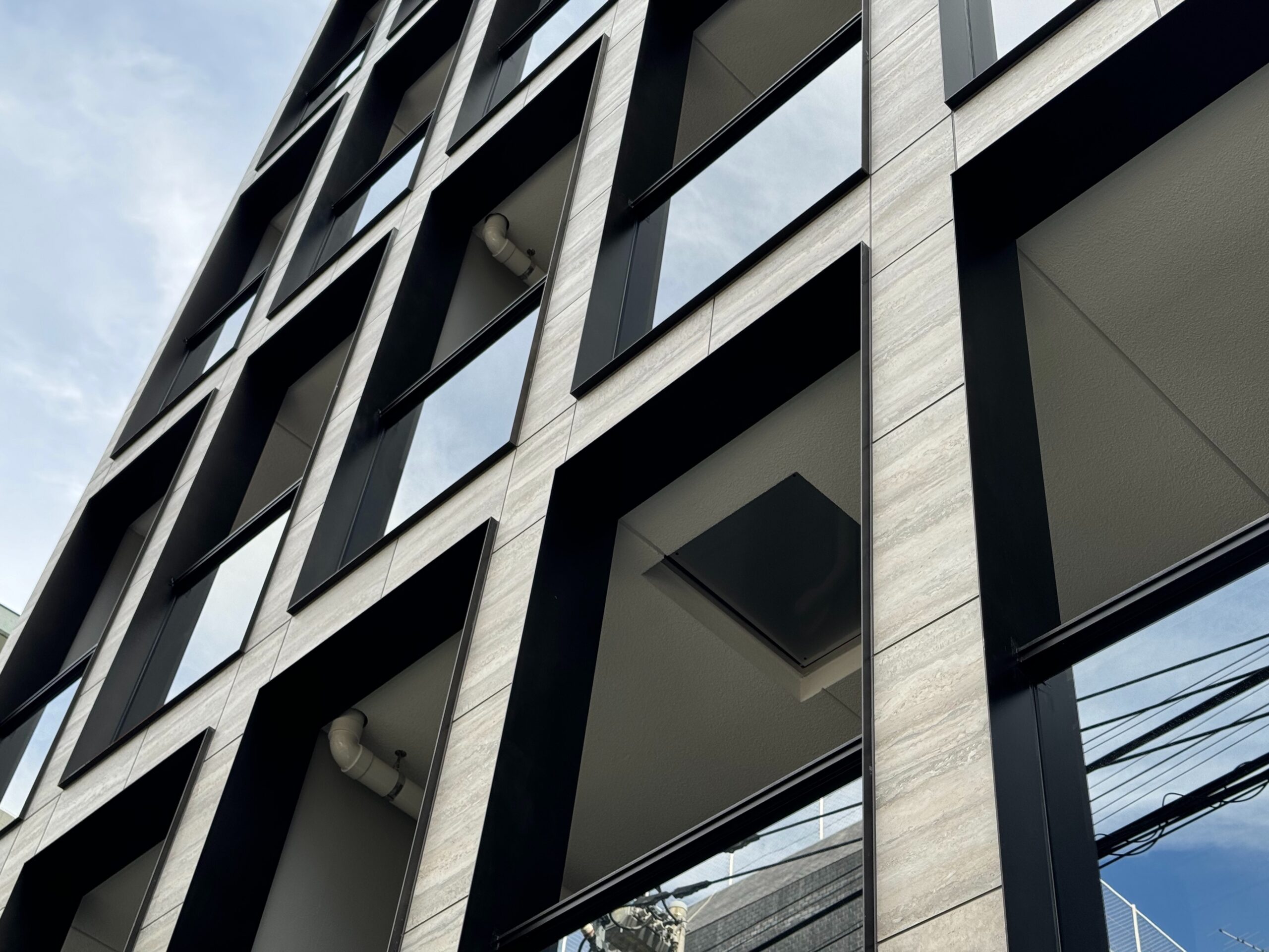 神楽坂駅からほど近くに2024年6月に竣工した「ピアース神楽坂センティア」は、モダンなファサードのデザインが印象的です。特にグリッド状に並んだ開口部を縁取るガラス手摺は、この建物のデザインにすっきりとした解放感を生み出しています。この開放感あふれるシャープさを生み出すために、フロントは様々な工夫を凝らしました。